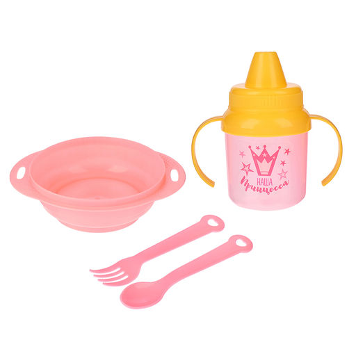 Набор детской посуды Наша принцесса, 4 предмета: тарелка, поильник, ложка, вилка, от 5 мес.