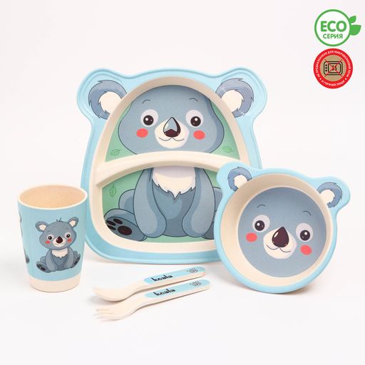 Набор бамбуковой посуды Коала, тарелка, миска, стакан, приборы, 5 предметов