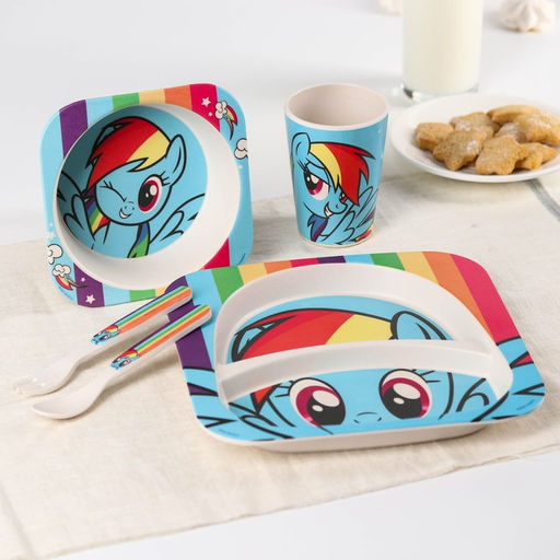 Набор детской бамбуковой посуды, 5 предметов: тарелка, вилка, ложка,стакан,миска "Радуга Дэш", My Little Pony