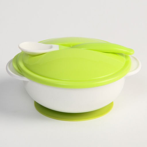 Набор детской посуды: миска на присоске 400мл., с крышкой, ложка, цвет белый/зеленый