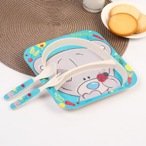 Набор детской бамбуковой посуды, 3 предмета: тарелка, вилка, ложка, Me To You