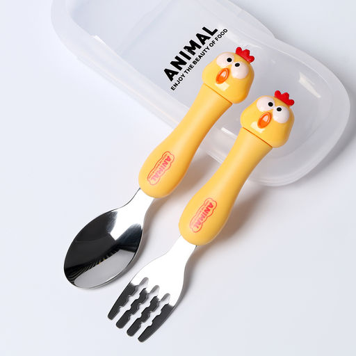 Набор детских столовых приборов в футляре Курочки, вилка, ложка