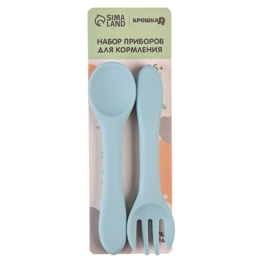 Набор детский столовых приборов, вилка и ложка, цвет голубой