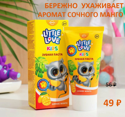 Цена снижена! LITTLE LOVE зубн.паста детская Сочное манго 2+ лам.туба 62гр