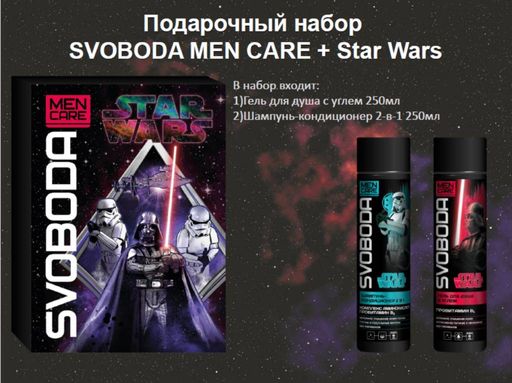 SVOBODA MEN CARE набор STAR WARS (гель д/душа с углем+шампунь-кондиционер 2в1)