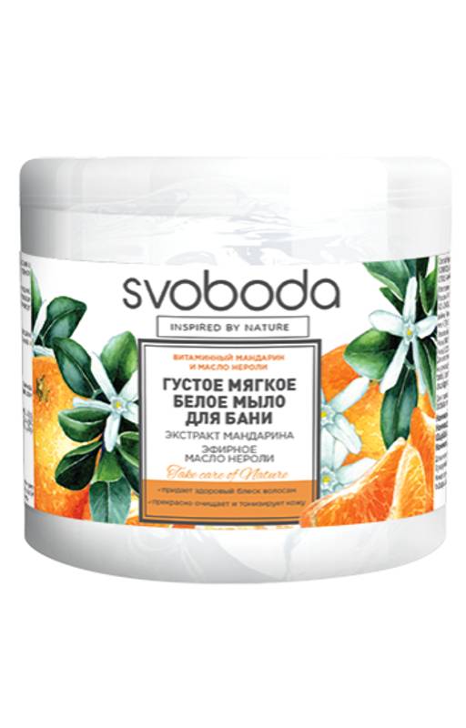 SVOBODA густое мягкое мыло д/бани Вит.мандарин и масло нероли (белое мыло) бан. 500мл
