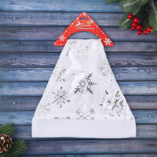 Колпак новогодний "Белый со снежинками" 28х38 см, белый