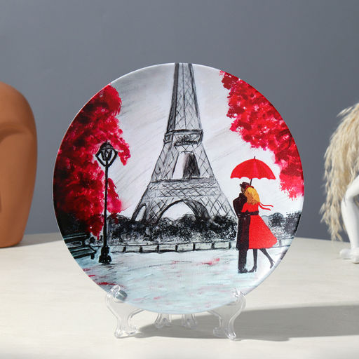 Тарелка декоративная "Пара", вид 2, с рисунком на холсте, D = 20 см