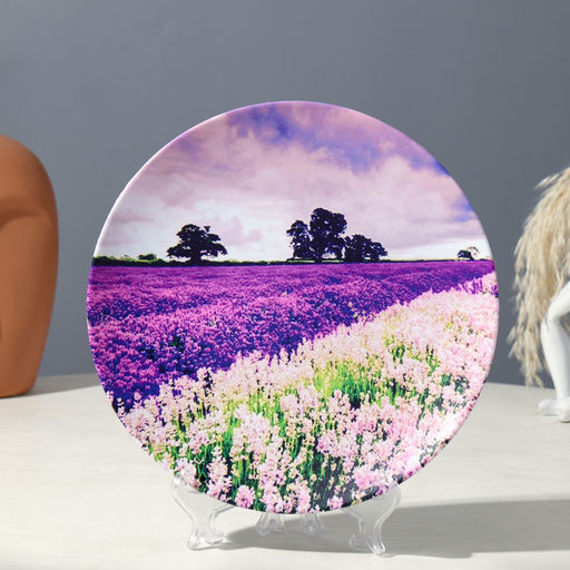 Тарелка декоративная Лавандовое поле, вид 2, с рисунком на холсте, D = 19,5 см