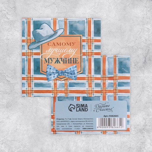 Цена за 20 шт. Открытка-мини Самому лучшему, рубашка в клеточку, 7 7см