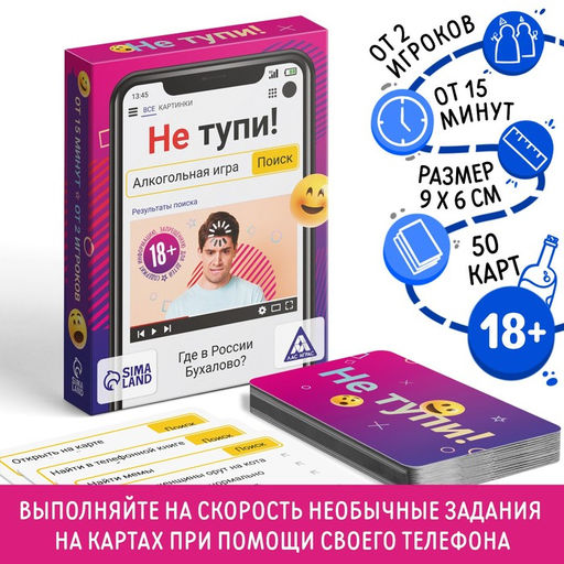Алкогольная игра Не тупи!, 50 карт, 18+