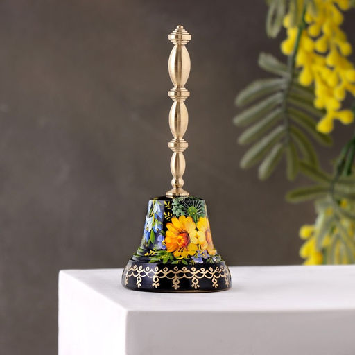 Колокольчик -позвонок №5 "Цветы", расписной, с длинной ручкой, d= 53 мм