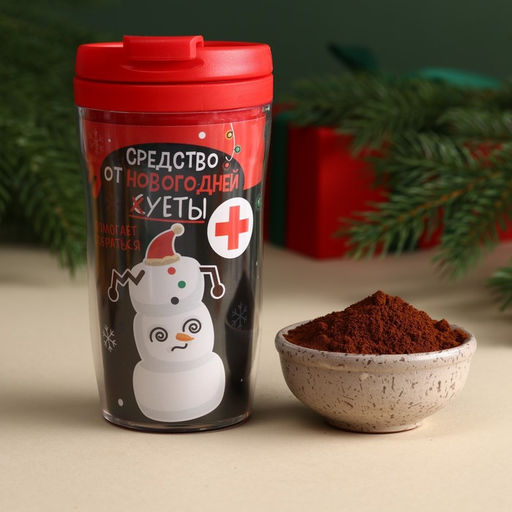 Кофе молотый в термостакане Средство от новогодней суеты, вкус: кокос - молочный шоколад, 30 г. (18+)
