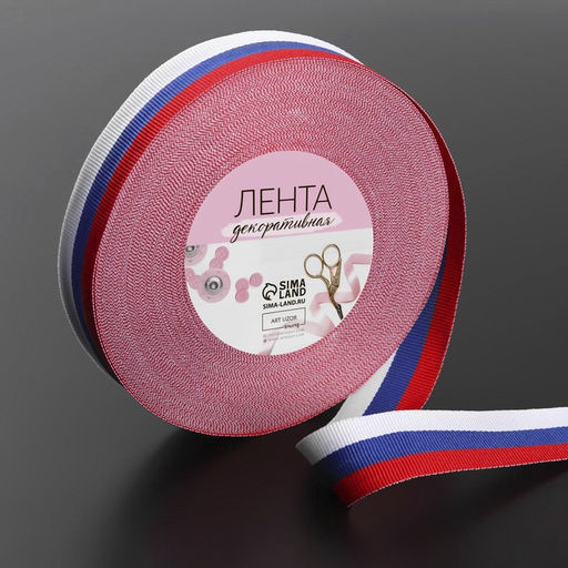 Лента репсовая Триколор, двусторонняя, 25 мм, 23 1 м