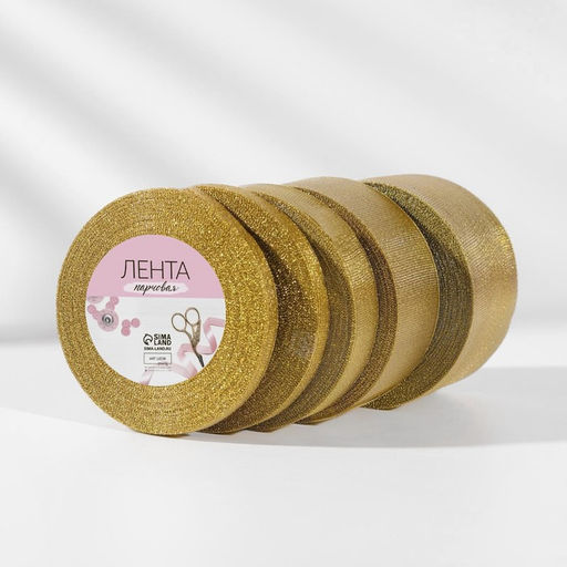 Набор парчовых лент, 5 шт, размер лент: 6/10/20/40/50 мм, 23 1 м, цвет золотой