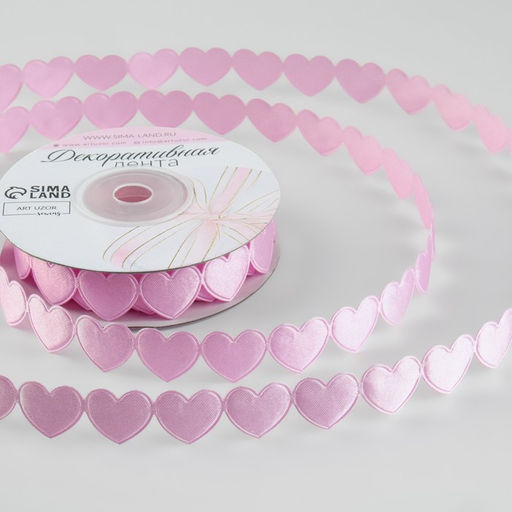 Цена за 2 шт. Лента фигурная Сердечки, 16 мм, 9 0,5 м, цвет розовый