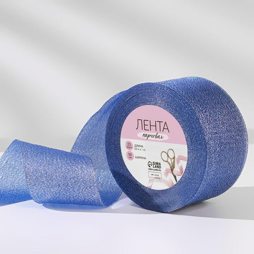 Лента парчовая, 50 мм, 23 1 м, цвет синий №037