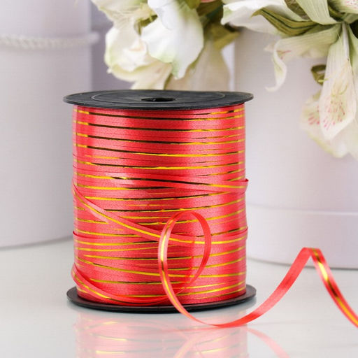Лента упаковочная красная с золотой полосой, 5 мм х 225 м