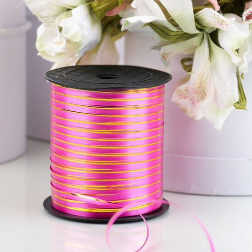 Лента упаковочная, розовая, с золотой полосой, 5 мм х 225 м