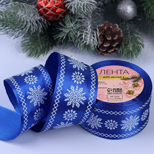 Лента атласная Снежинки, 50 мм 23 1 м, цвет синий №122