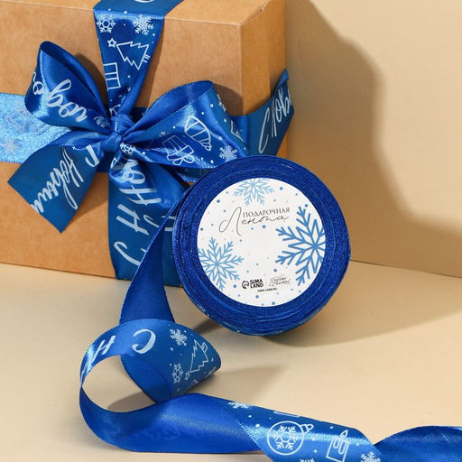 Лента атласная С Новым годом!, синяя, 4 см 25 ярдов (22,5 м)