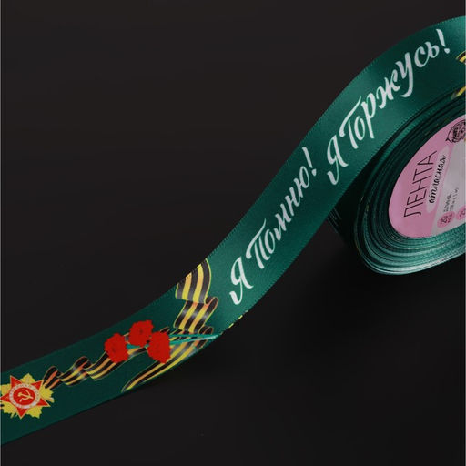 Лента атласная Я помню! Я горжусь!, 25 мм 23 1 м, цвет зелёный