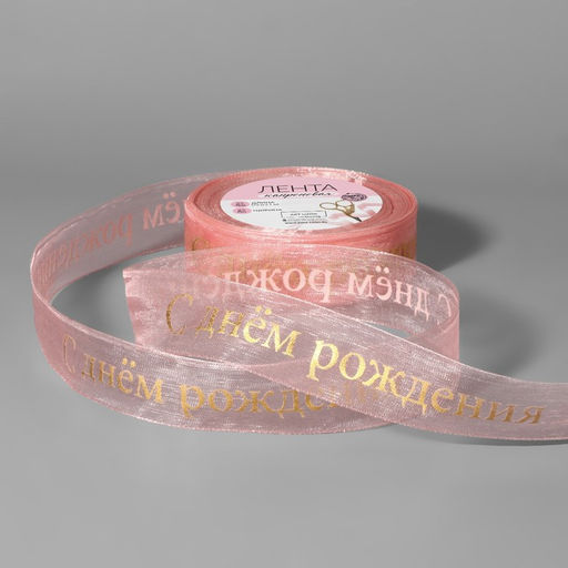 Лента капроновая с тиснением С Днём рождения, 25 мм, 22 1 м, цвет розовый/золотой