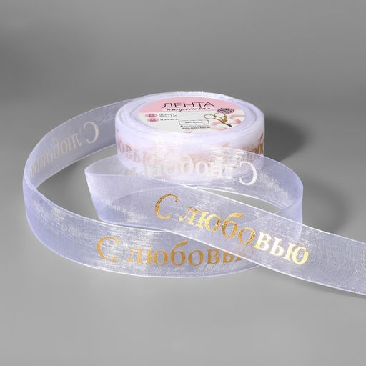 Лента капроновая с тиснением С любовью, 25 мм, 22 1 м, цвет белый/золотой