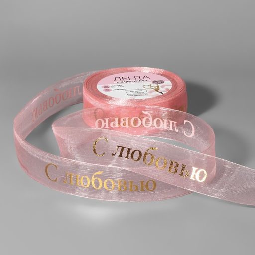 Лента капроновая с тиснением С любовью, 25 мм, 22 1 м, цвет розовый/золотой