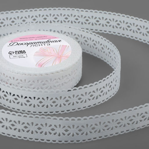 Цена за 2 шт. Лента декоративная, репсовая Ажурные цветы, 25 мм 9,1 0,5 м, цвет белый