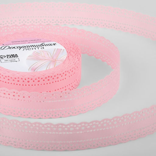 Цена за 2 шт. Лента декоративная, репсовая, с ажурным краем, 25 мм 9,1 0,5 м, цвет розовый
