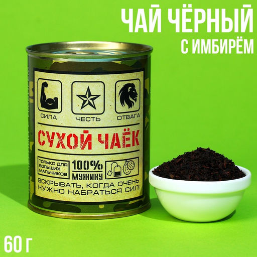 Чай чёрный индийский Сухой чаёк с имбирем, в консервной банке, 60 г.