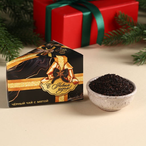 Чай чёрный в коробке-тортике С новым годом, вкус: мята, 50 г.