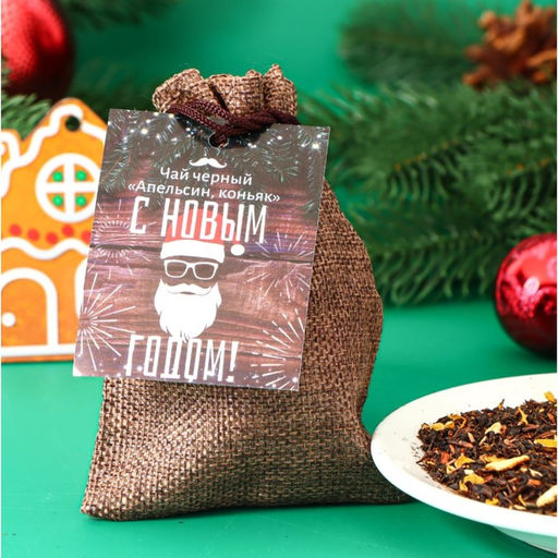 Чай новогодний со вкусом апельсина и коньяка, черный листовой, 30 г