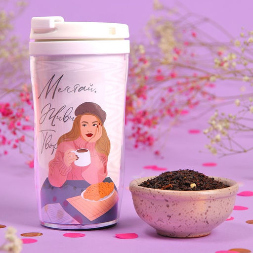 Чай чёрный Мечтай, живи, твори с ванилью и карамелью в термостакане 250 мл., 20 г. МИКС