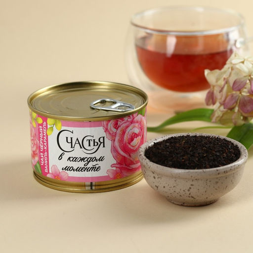 Чай чёрный в консервной банке Счастья в каждом моменте, вкус: ваниль-карамель, 20 г.