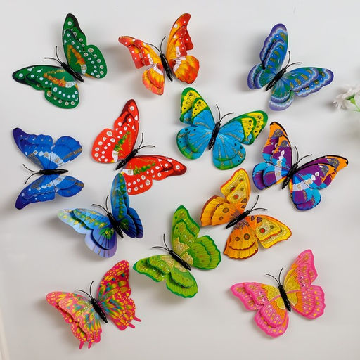 Цена за 100 шт. Магнит пластик "Бабочка золотые блики" двойные крылышки 9,5х7 см