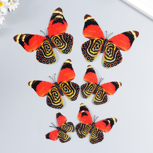 Магнит пластик под ткань "Бабочки двойные, блеск" н-р 6 шт МИКС h= 10;10,5;5;6,7;8,4;6,7 см