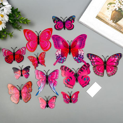Магнит пластик "Бабочки ярко-розовые" набор 12 шт