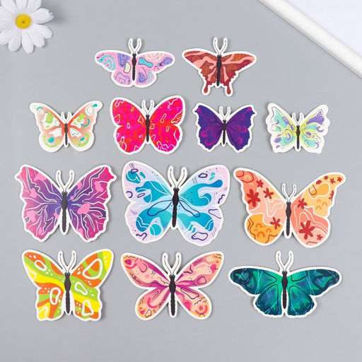Бабочки картон "Абстракция" набор 12 шт h=4-10 см на магните