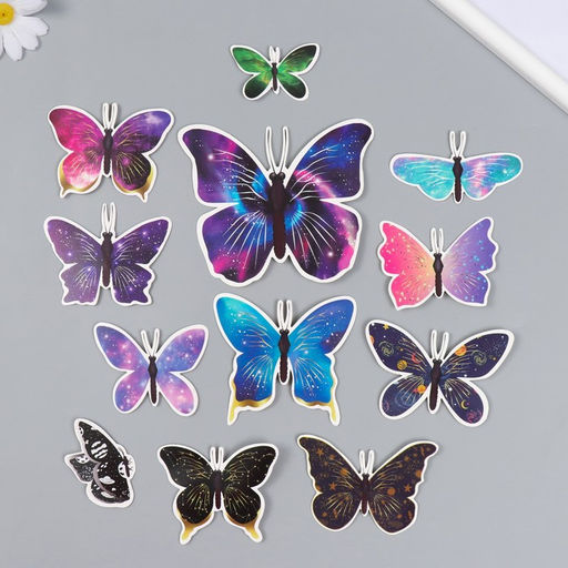 Бабочки картон "Косм на магнитеос" набор 12 шт h=4-10 см на магните