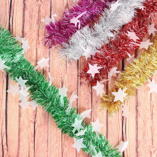 Цена за 10 шт. Мишура "Вираж" звёзды, d-5 см, 200 см, микс