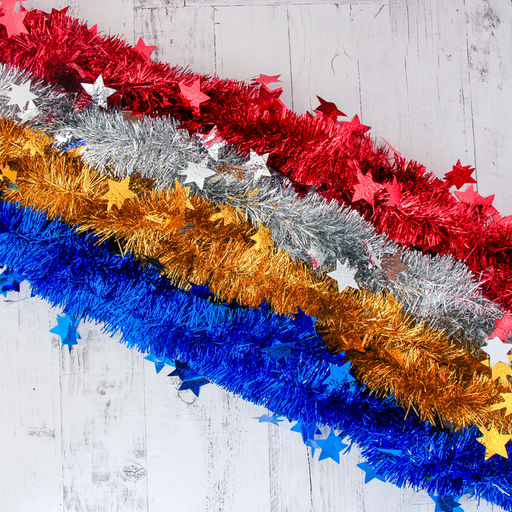 Цена за 10 шт. Мишура "Марс" звёзды d-6 см, 200 см, микс