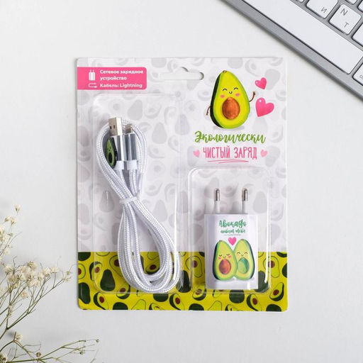 Набор кабель USB - Lightning и штекер Авокадо, 1 м