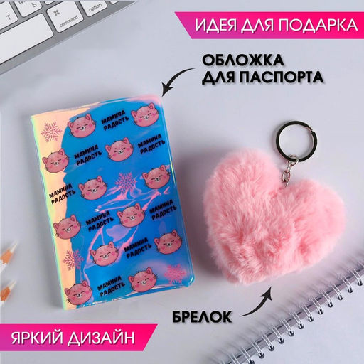 Набор Мамина радость, голографическая обложка для паспорта и брелок