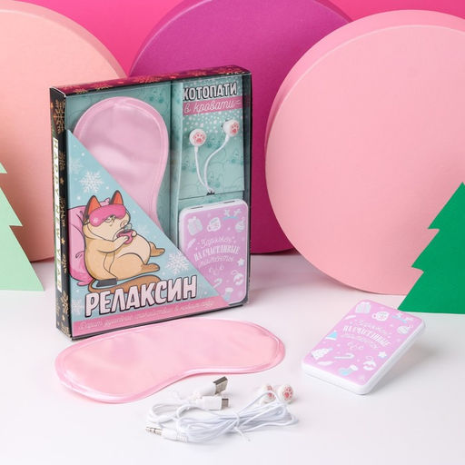Проводные наушники, маска для сна и зарядное устройство (5000 mAh) Релаксин, набор