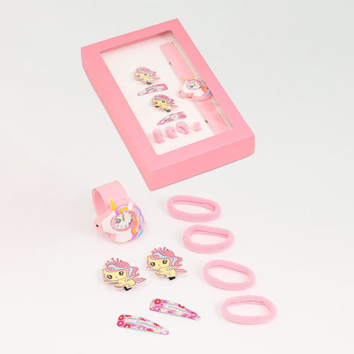 Детский подарочный набор для девочек "Пони" 9 в 1: наручные часы, 4 резинки, 2 зажима, 2 невидимки 7