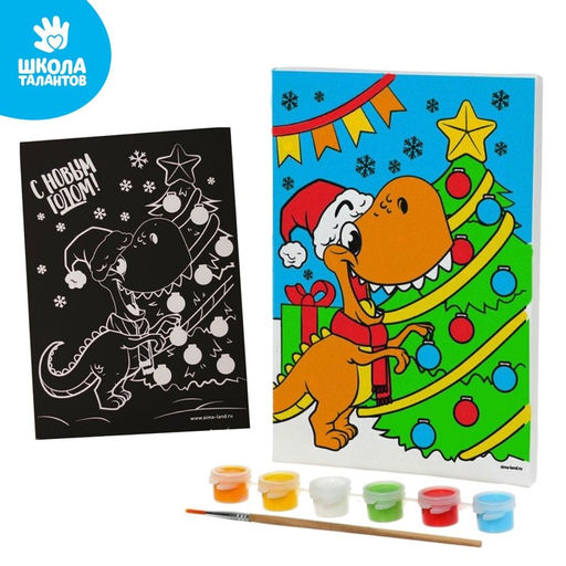 Набор для творчества. Картина по номерам и гравюра Динозаврики у ёлки
