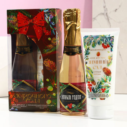 Подарочный новогодний набор женский Сказочного года: гель для душа во флаконе шампанское 250 мл, крем для тела 200 мл