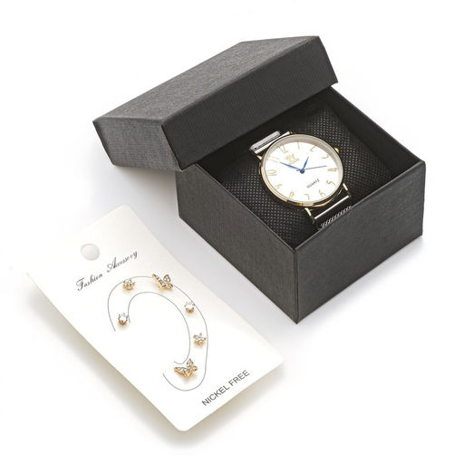 Женский подарочный набор 7 в 1: часы наручные женские ShiKai 024, серьги, d-3.8 см